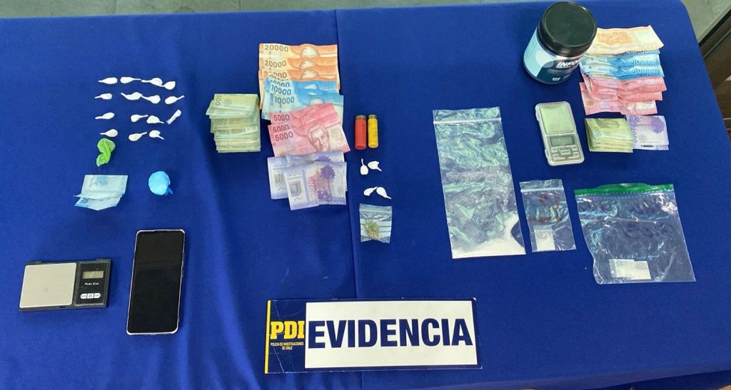 Durante el procedimiento policial se incautaron 25,93 gramos de clorhidrato de cocaína distribuidos en 21 contenedores, 1,49 gramos de cannabis en tres contenedores, una balanza digital, cinco teléfonos celulares, $329 mil pesos en dinero en efectivo y munición correspondiente a cartuchos calibre 12 y 20, además de otros elementos asociados a la actividad ilícita.