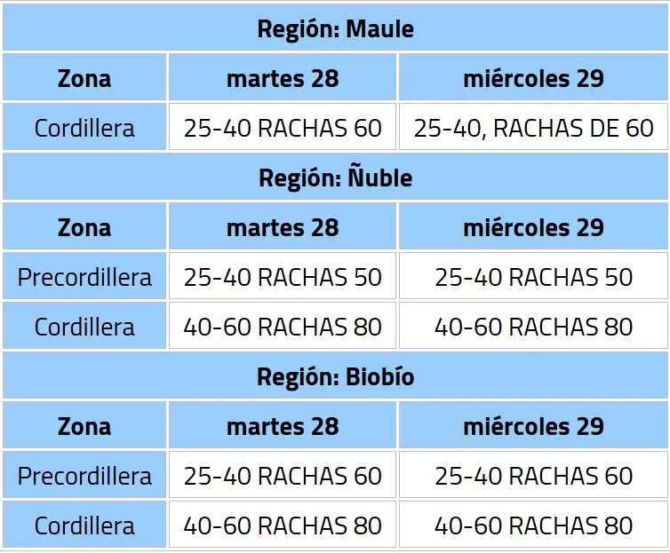Viento normal a moderado: Aviso Meteorológico desde el Maule hasta el Bío Bío