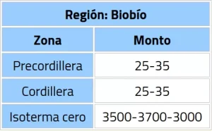 • Bío Bío (Precordillera, Cordillera).