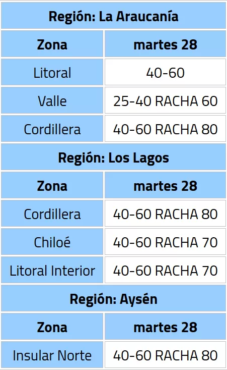 Viento normal a moderado: Aviso Meteorológico para zonas de las regiones de La Araucanía, Los Lagos y Aysén