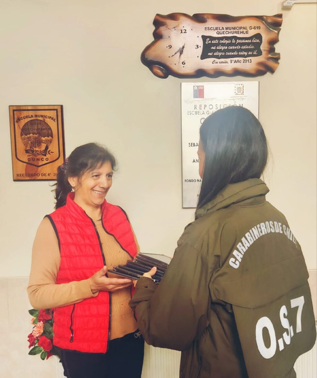 Es en este contexto, que personal de la sección especializada concurrió hasta el establecimiento educacional afectado para entregar los aparatos electrónicos recuperados, siendo recibidos por el personal docente y quienes manifestaron su gratitud; “hemos recibido la grata visita del OS-7 desde Temuco, que ha venido a regresar 8 tablets recuperados de un robo que se hizo acá en el establecimiento el mes pasado (…) es parte de lo que habíamos perdido y esperamos que, gracias al trabajo que está realizando Carabineros de Chile, logremos recuperar el resto del material que nos fue robado desde las aulas del establecimiento”, valoró la encargada de la escuela.